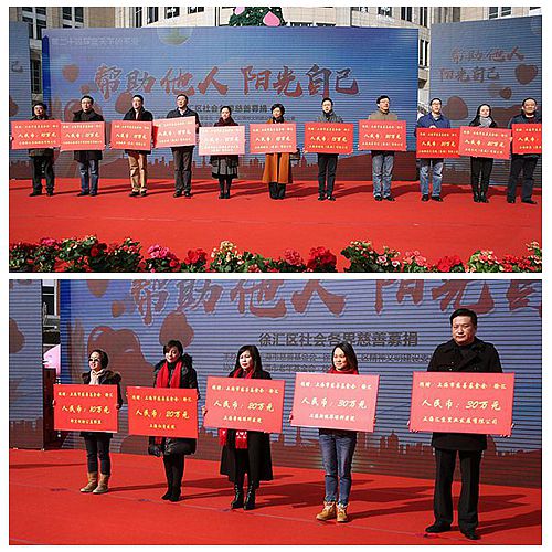 仪式最后,市慈善基金会·徐汇会长韦源敲响新年徐汇区第一声慈善锣声,同时宣布徐汇区“万人募捐”大爱行动正式开始。500位学生志愿者在徐家汇等5个集中劝募点上,开展了“万人上街募捐”活动,募捐善款2万余元,将用于上海市慈善基金会“让特困家庭过好年”项目。