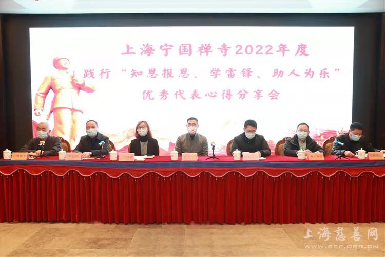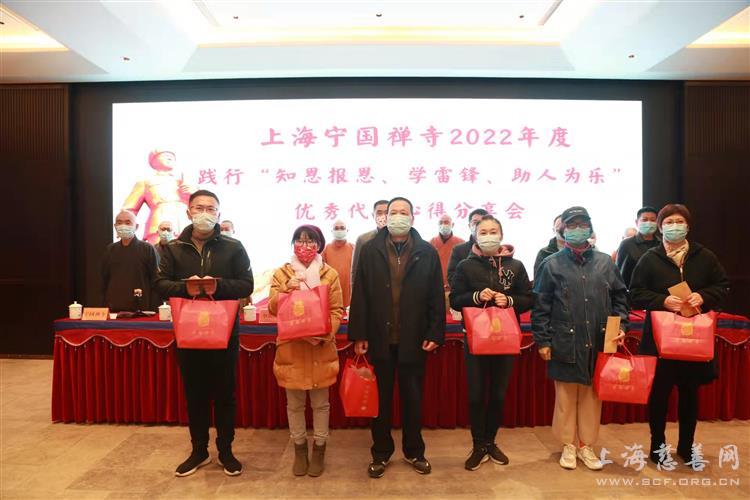 上海慈善网讯 在第59个学雷锋纪念日到来之际,3月3日上午“知恩报恩、学雷锋、助人为乐”优秀代表心得分享会,在宁国禅寺举行。会议表彰了102位来自长桥街道、凌云街道、华泾镇的优秀代表和街道干部。会上,各位领导向街道优秀代表颁发了奖状和礼品,对他们始终热心从事公共事业,全心全意为人民服务的精神表示了赞赏。