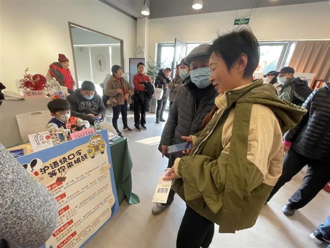 公益摊位设置的“沪语绕口令,等你来挑战”活动,几条沪语绕口令,难度逐级递增,从“简单版”一直到“挑战版”,参与者只要能用沪语念出来,即可获得相应的奖品。据主办方介绍,凌云社区有不少老年居民来自五湖四海,学习沪语可以帮助他们更好地融入社区,和本地居民打成一片。活动现场有一位邱老伯,作为本地人,他轻松过关,获得奖品之后,还不断地鼓励其他人参与“挑战”。当有居民表示自己不会讲沪语,邱老伯便现场一句一句地教对方说绕口令,还把自己的奖品赠送给对方,让在场的人感受到居民之间深厚的邻里情谊。