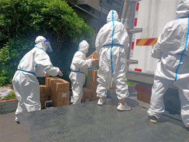 每份礼包里含有9份正餐,3份小馄饨,可以提供老人四天用餐的量。由于礼包内的食物冷冻时间不能过长,5月3日,捐赠方特安排三辆冷链车分别送至两个街道和一个敬老院的六个接收点共790份,5日向另两个街道配送900份。当天下午,收到礼包的敬老院老人已经吃上了鲜美的小馄饨。