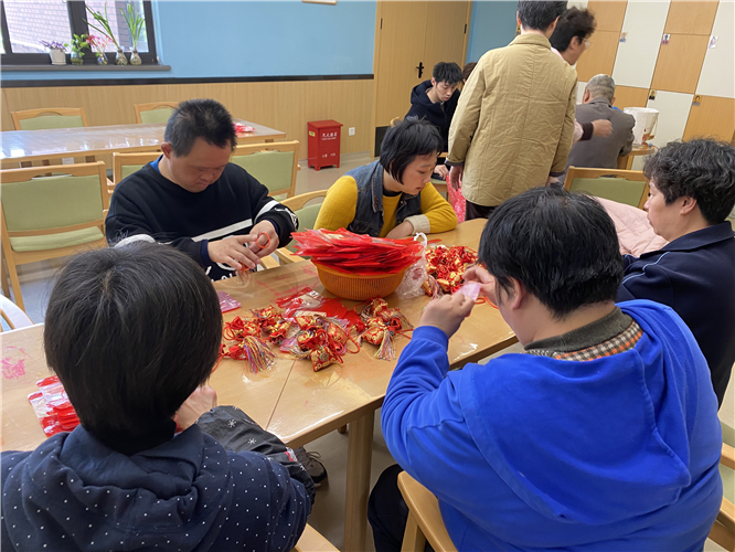 上海市长宁区10个街镇同时成立了 “阳光之家”,为具有本区户籍的18-45岁智力障碍残疾人搭建了走出家门,融入社会的平台。由于这个群体心智年龄等同于儿童,大家将他们称为“阳光宝宝”。学员日常在“阳光之家”进行一系列康复培训活动,并由志愿者老师指导学习制作手工艺品,通过义卖销售,为他们带来一部分收入的同时,更增强他们的自信心和社会融入感。
