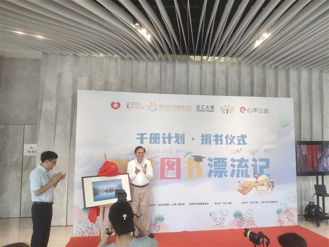 上海市慈善基金会虹口区代表处会长管维镛、秘书长徐长虹及业务工作人员参加了捐书仪式。