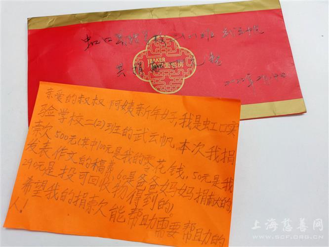 上海慈善网讯 2月14日,来自虹口区实验学校二(2)班的武云帆小朋友在家长的带领下,向上海市慈善基金会虹口区代表处捐款500元,奉献出自己的爱心。