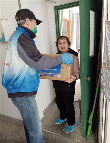 此次上海疫情以来,各居民小区实行封闭管理,全体居民足不出户,年轻人尚能通过团购等方式满足日常生活需要,但老年人怎么办?位于虹口区曲阳路街道的东五居民区疫情防控任务重,社区居民数量多,老龄化程度也相对较高,解决好居民生活物资供给,特别是保障好独居老人的生活,是小区疫情防控工作面临的一大难题。但仅管保供物资紧缺,困难重重,居委在积极做好有限物资及时发放的同时,重点做好关心小区80岁以上独居老人的生活保障。在接到“‘疫’起护老——社区高龄独居老人关爱项目”生活关爱包的第一时间,东五居民区的居委干部和志愿者们向独居老人们转达了上海市慈善基金会对老人健康状况和生活情况的关心,祝福他们好好生活、保重身体,鼓励他们乐观面对,战胜困难,并将一箱箱装满牛奶、奶粉、酸奶、营养麦片、挂面、各种肉罐头、香肠、软面包、饼干等低糖低脂食品的生活关爱包送到老人的手上。