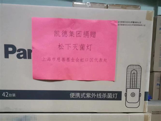 上海慈善网讯 6月11日下午,由上海市慈善基金会虹口区代表处采购的4000台松下灭菌灯顺利运抵虹口区。该批物资将为虹口区各街道、养老院、学校等防疫一线的环境清洁消毒工作提供有力保障。采购该批物资所使用的善款由凯德集团捐赠。