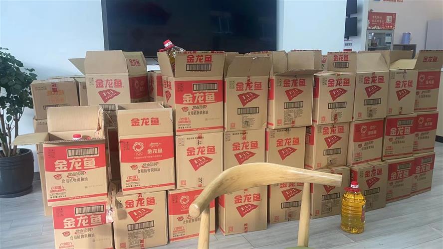 该批礼包由金龙鱼慈善公益基金会向上海市慈善基金会虹口区代表处捐赠,每份礼包内含有一瓶金龙鱼黄金比例食用植物调和油*4L以及一袋金龙鱼特选软香稻*5KG。