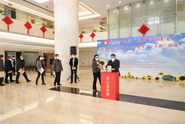 1月28日,2023年春节后首个工作日,第二十九届“蓝天下的至爱”虹口区机关干部2023年慈善“一日捐”活动在虹口区机关大楼举行。