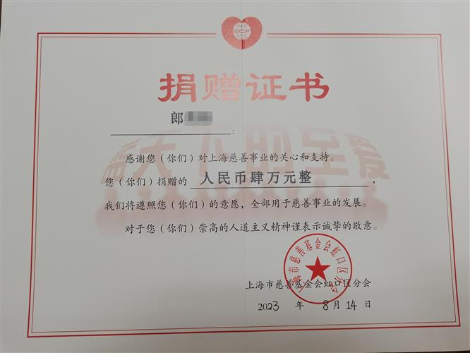 2023年8月14日15:53 来源:上海市慈善基金会虹口区代表处