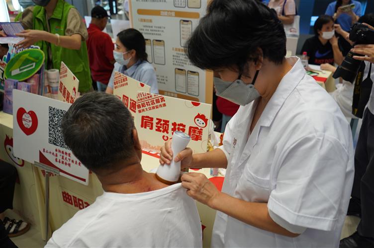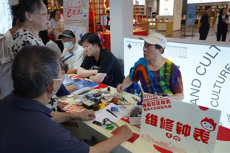 活动现场便民服务品类丰富,社区居民和老年朋友纷纷前来“打卡”。在健康服务区,居民们在现场能体验中医耳穴、肩颈按摩、血糖检测、血压监测、步态分析等服务;生活服务区有公益理发、公益修伞修鞋、小家电及钟表标维修;此外,还有养老、就业、法律咨询类服务,以及民俗刻章、艺术摄影、慈善募捐等特色服务。