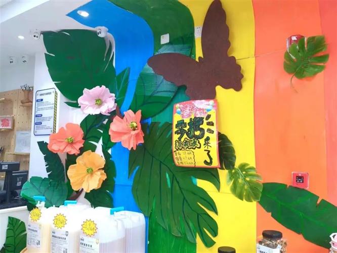 走进超市,右手边是满满一面墙的手工装饰,立体花朵点缀在彩虹之上,正好和超市的新名字——“彩虹空间” 相呼应。“欢迎光临广中路街道慈善超市,我们有爱心企业提供的百种义卖商品,还有‘星宝’的艺术作品……”小戴店长热情地向顾客介绍。