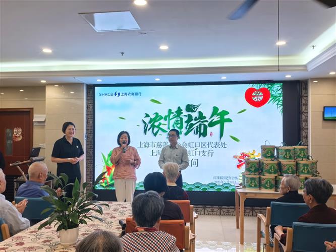 在端午佳节即将来临之际,5月30日上午,上海市慈善基金会虹口区代表处联合上海农商银行虹口支行走进红日养老院,开展了一场温馨而充满温情的端午节敬老活动,为老人们送去了节日的祝福与关怀。