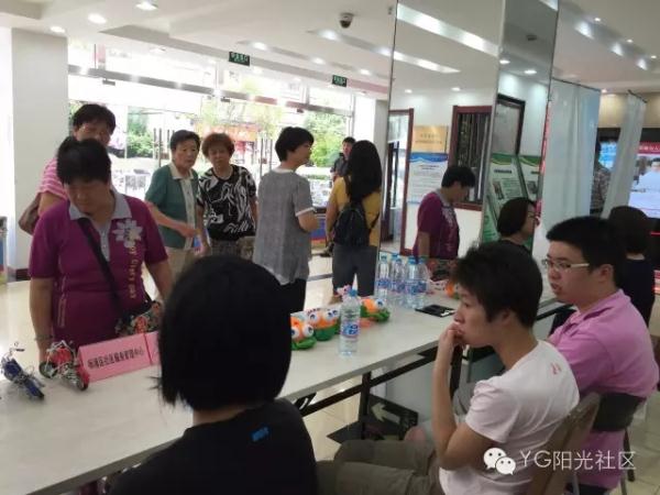 来自五角场街道“三阳”机构的学员在阳光管理中心社工的带领下来到摊位前,将自己手工制作的串珠、玩偶萝卜等作品进行爱心义卖。学员们在社工引导下逐渐抛开羞涩、打开心扉,向过往居民热情介绍自己的手工作品,他们真诚的笑容感染着前来观看的居民们。不少人积极参与到义卖活动中,与阳光学员亲切交谈,了解手工作品制作过程,许多居民慷慨解囊,用自己的实际行动奉献一片爱心。