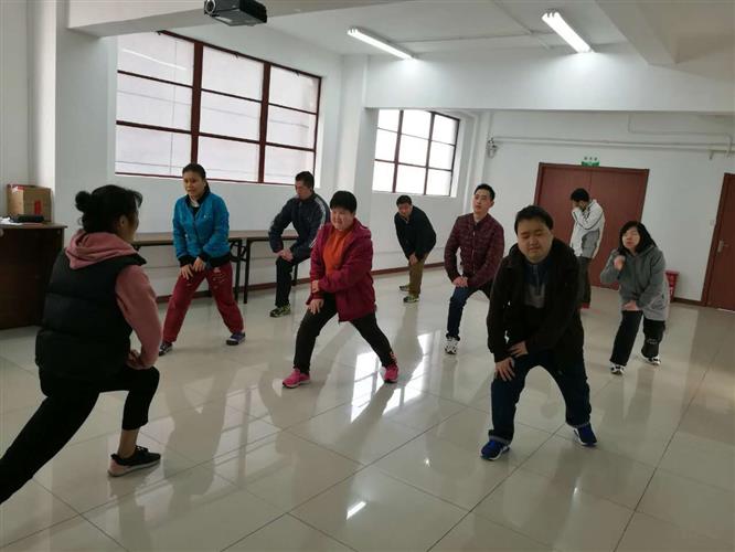 体院志愿者为阳光学员们准备了徒手操训练,以不断增强他们的身体素质。在进行一系列的热身运动之后,志愿者开始进行一整套的徒手操教学辅导,学员们高涨的学习热情,以及一丝不苟的学习态度让阳光中心社工和志愿者倍感欣慰。在徒手操训练结束之后,学员们在社工的带领下开展了趣味游戏活动,大家积极参与、全情投入,欢欣愉悦的微笑始终洋溢在学员们的脸上。