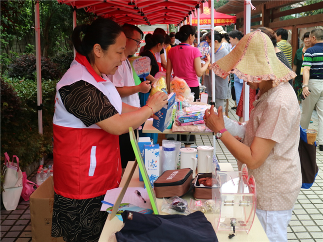 此次活动是由杨浦区缘飞燕社区服务中心、殷行街道工农新村片区党建小联盟、殷行街道睦邻中心联合发起,由区残疾人联合会、《上海每周广播电视报》、上海闸北发电厂、包头中学、尚街loft五维空间园区等15家爱心单位共同参与。活动当天,志愿者们早早地来到活动现场,大家一起动手搭建好帐篷,整齐摆放好来自于各爱心单位提供的义卖物品,有串珠餐巾纸盒、编织手袋、小家用电器等琳琅满目的各类生活用品。而最受居民欢迎的要数上海柴油机股份有限公司食堂自制的各种花式面包,开市不到半小时就被大家抢购一空。