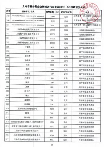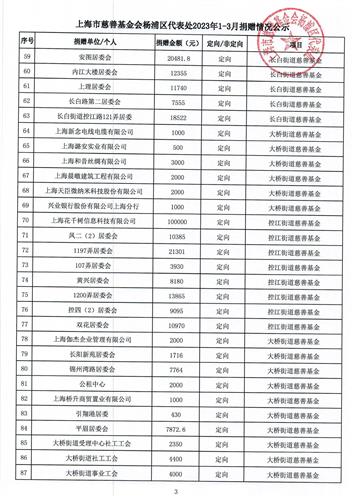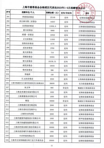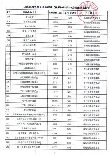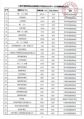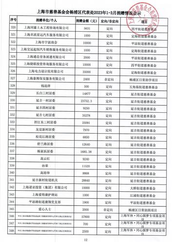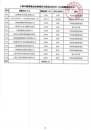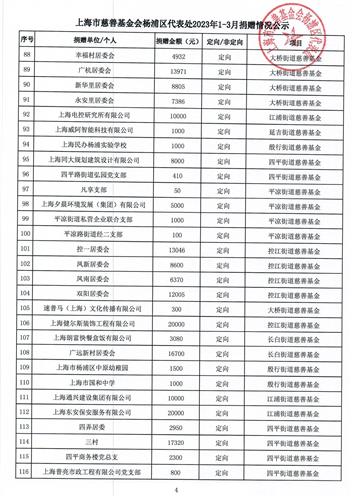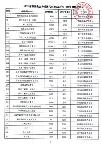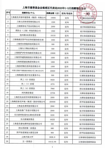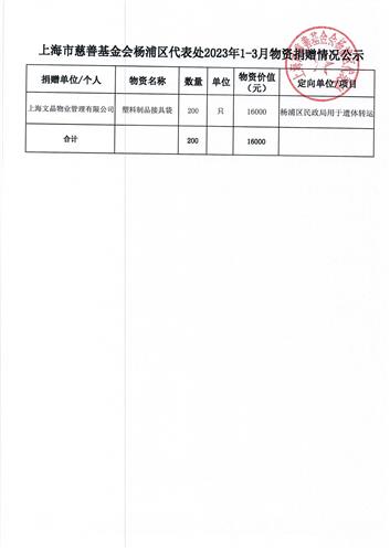 上海市慈善基金会杨浦区代表处2023年1—3月公示