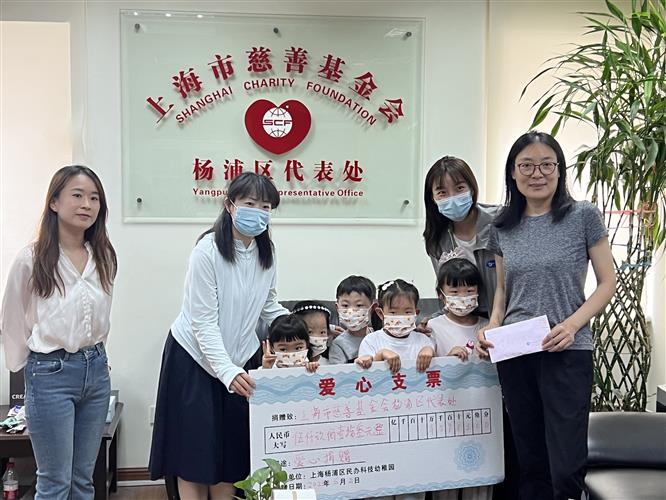 6月1日国际儿童节这天,上海杨浦区民办科技幼稚园为小朋友们举办了一场盛大的儿童节主题活动,有自助餐、捞金鱼、扎气球、义卖等形式丰富的活动。活动结束后第二天,老师们清点完义卖款5913元,便带着5位小朋友来到上海市慈善基金会杨浦区代表处捐款,让他们过一个欢乐又有意义的儿童节。
