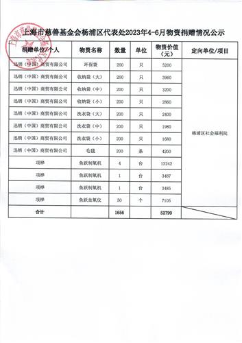 上海市慈善基金会杨浦区代表处2023年4-6月接受物资捐赠公示