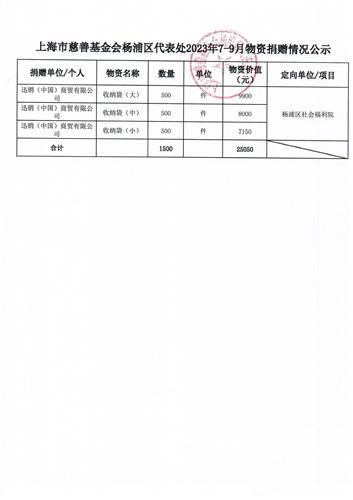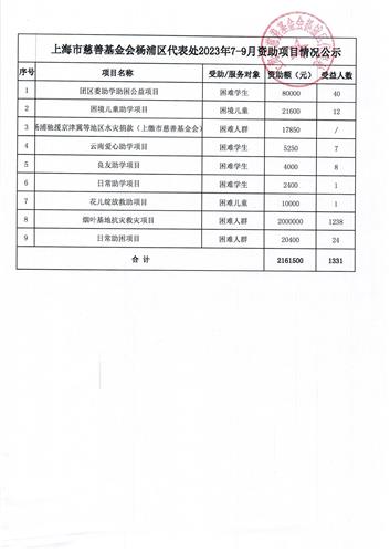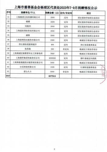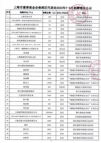 上海市慈善基金会杨浦区代表处2023年7-9月接受捐赠及慈善资助公示