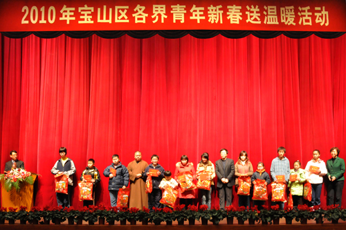 上海慈善网讯:2010年1月29日下午,宝山区各界青年在区文化馆一楼影剧院齐聚一堂,为区内贫困青年送上新春的祝福和关爱。