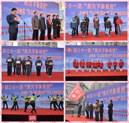 此次活动由市慈善基金会宝山区分会、宝山区文明办、宝山区机关党工委、市老年基金会宝山区分会主办,友谊路街道、吴淞街道、张庙街道、月浦镇人民政府、区公安分局、区教育局、宝山区文化馆等单位共同协办。