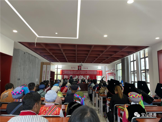 上海市慈善基金会宝山区代表处会长周德勋,维西县委书记马盛春,州委副秘书长、迪庆联络小组组长陈雷,维西县副书记龙潭清,副县长饶开清,宝山慈善代表处副秘书长袁建民出席仪式。