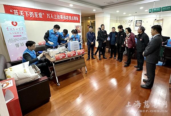 善款清点期间,上海市慈善基金会副理事长吴茵蝶,上海市慈善基金会宝山区代表处会长周德勋,中国农业银行上海市分行党委委员、副行长张国兴慰问了正在清点核算的银行志愿者。