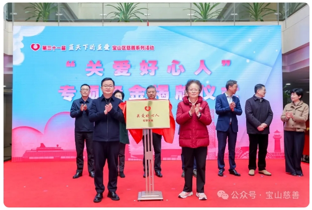 活动现场,胡宝国、周德勋共同为“关爱好心人”专项资金揭牌。“关爱好心人”专项资金由宝山区精神文明建设办公室设立于上海市慈善基金会宝山区代表处,定向用于生活或工作在本区的区级以上道德模范的生活帮扶、工作支持及开展相关公益活动。