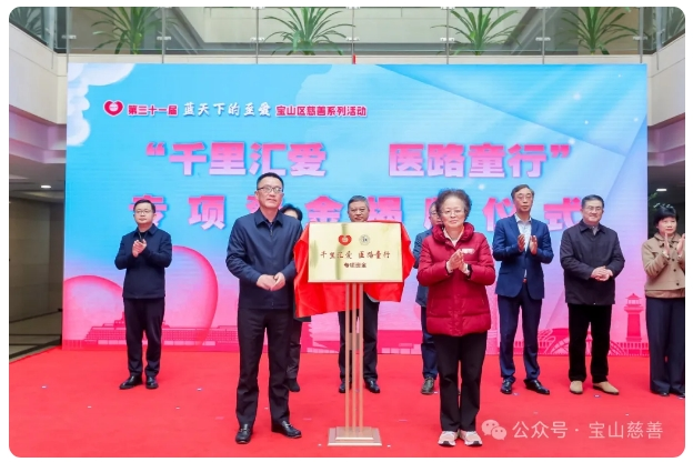 陆奕绎、周德勋共同为“千里汇爱 医路童行”专项资金揭牌。“千里汇爱 医路童行”专项资金由宝山区卫健委与宝山区合作交流办共同商议,设立于上海市慈善基金会宝山区代表处,将定向用于帮助宝山支援地区(新疆、云南)有需要的患有先天性疾病等重大疾病的学龄前儿童获得医疗救助和康复治疗。