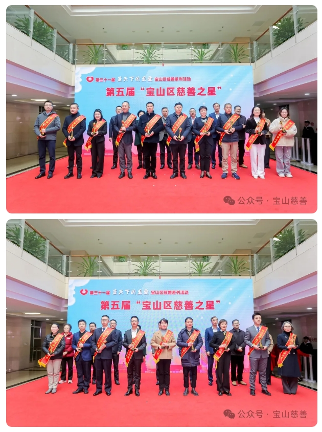 与会嘉宾们还为第五届“宝山区慈善之星”颁奖。这些获奖者中有发展不忘社会的优秀企业家代表、有默默无闻勇于奉献的社区志愿者代表、也有具有凝聚力感召力的集体代表。