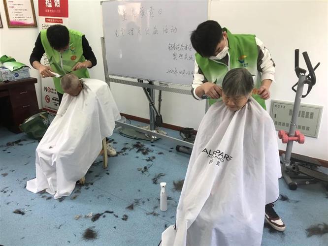 对于行动不便无法出门的老人,志愿者们则走进老人家中为老人理发。周到的服务赢得了社区老人的一致好评。