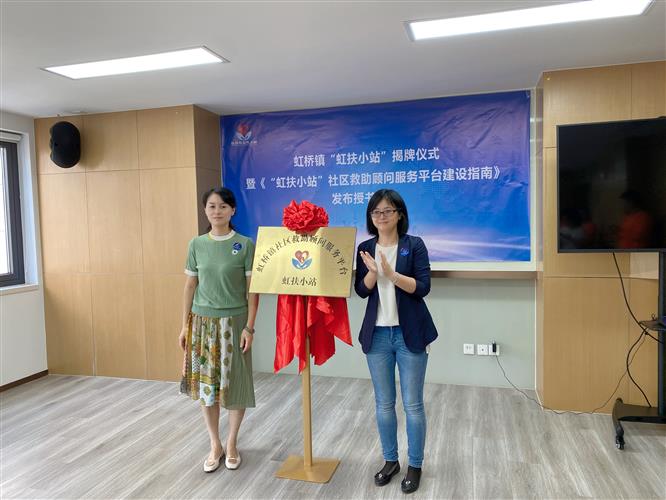 10月14日上午,虹桥镇社区救助顾问平台“虹扶小站”揭牌仪式在闵行区紫藤邻里中心举行。
