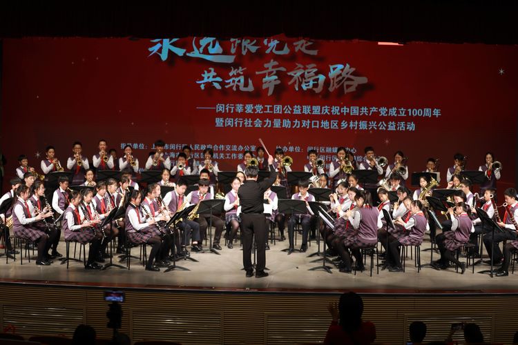 为热烈庆祝中国共产党成立100周年,分享闵行莘爱党工团公益联盟社会志愿服务、公益慈善和扶贫攻坚成果,肯定联盟成员的爱心付出,鼓励继续参与闵行区对口帮扶地区下一步万企兴万村工作的积极性,“永远跟党 走共筑幸福路”主题庆祝活动2021年10月19日下午在闵行区群众艺术馆顺利举办。
