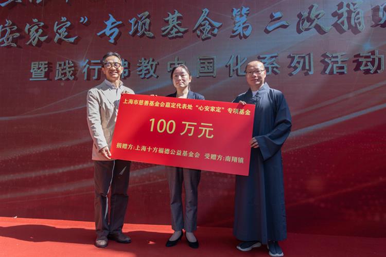 开幕式现场举行“心安家定”专项基金第二次捐赠仪式。“心安家定”专项基金由上海十方福德公益基金会于2023年发起设立,通过上海市慈善基金会区嘉定代表处,每年向南翔、江桥两镇各捐赠100万元,5年共计1000万元,旨在助力嘉定区经济社会高质量发展,建设人人乐业、奋发有为的和谐社会。