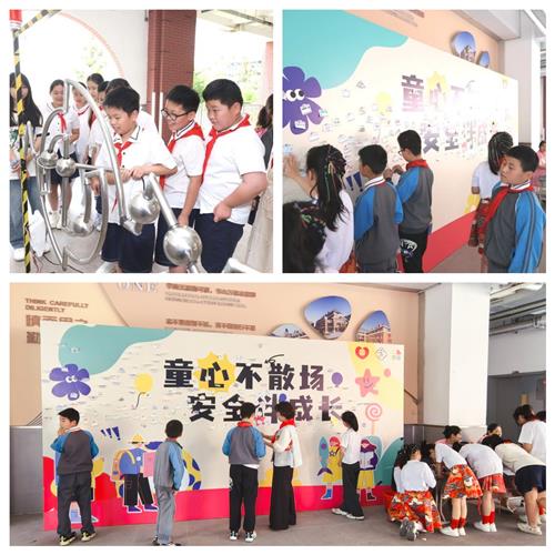 与此同时,体育馆化身为欢乐的安全主题游园会场域,孩子们在游戏中学习安全知识。未来信箱:郑重写下一句给未来自己的话,贴在留念墙上。这小小的信笺,是此刻对未来的承诺与期许,时间会见证它的生长。