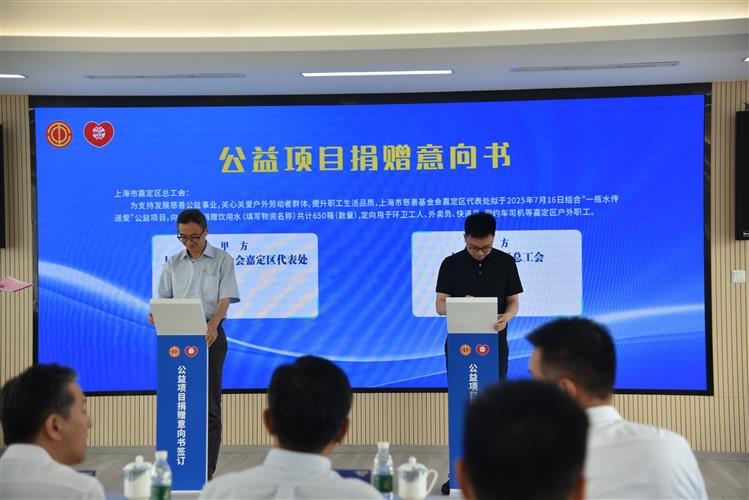 7月16日,上海市慈善基金会嘉定区代表处与嘉定区总工会共同举办的“一瓶水,传递爱”公益项目暨上海数字汽车园户外职工爱心接力站启动仪式圆满举行。本次活动聚焦关爱高温天气下坚守岗位的户外工作者,通过多项暖心举措传递社会温情。爱心接力站周围500多家大型零部件企业都纷纷捐出“一瓶水”。