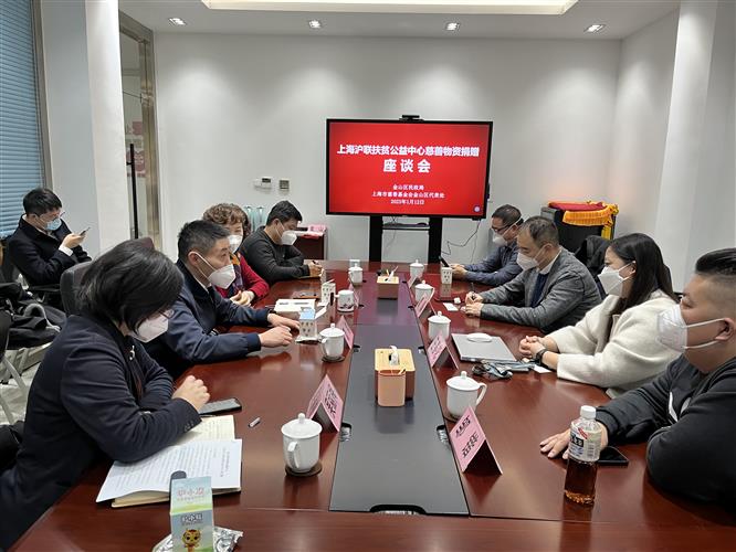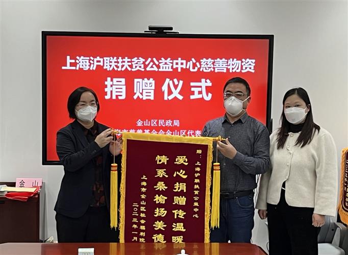1月12日下午,上海沪联扶贫公益中心慈善物资捐赠仪式在上海市慈善基金会金山区代表处会议室举行。