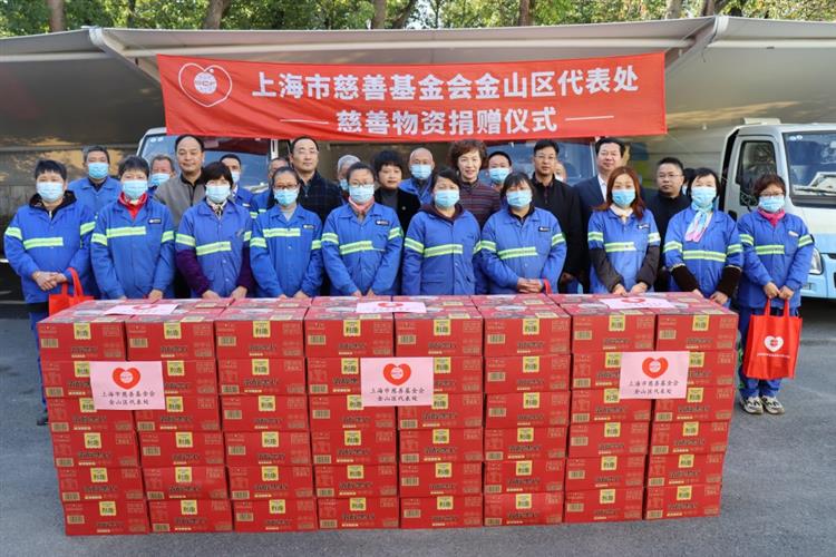 上海市慈善基金会金山区代表处近日向金山区绿化和市容管理局捐赠3500箱饮品,用于慰问全区所有一线环卫工人。