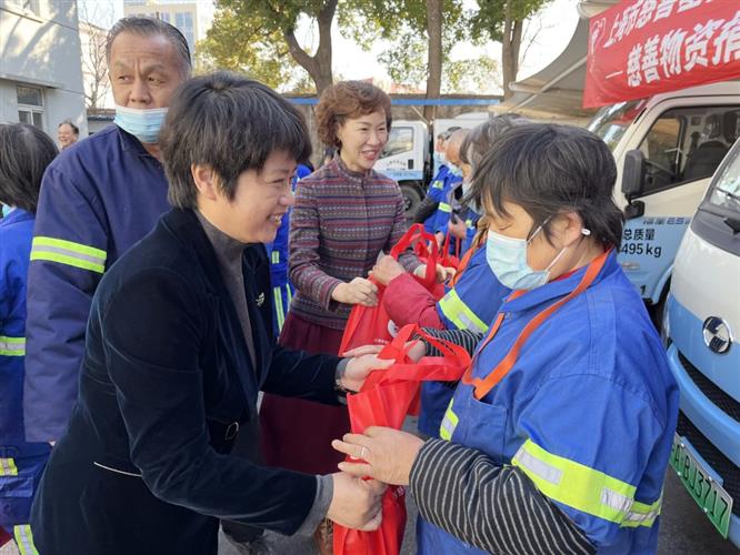 夏霞红对金山区代表处的爱心捐赠表示感谢,并对广大一线环卫工人任劳任怨、勤勤恳恳的工作和付出表达了敬意。她表示,环卫工人起早贪黑、顶风冒雨,用双手扮靓了金山的颜值,为提升上海湾区形象、改善居民生活环境作出了自身贡献。