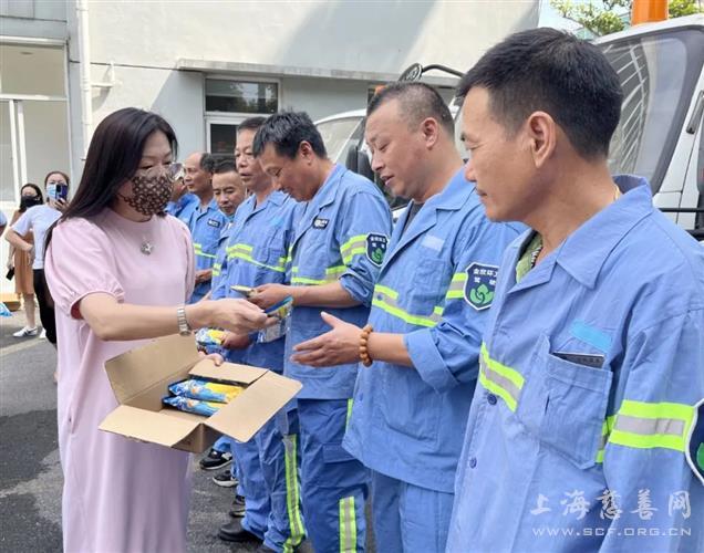 近日,来自石化街道梅溪茶楼的店主翁引观女士向上海市慈善基金会金山区代表处捐赠棒冰250箱,用于慰问一线环卫工人和交警,为酷暑下的户外工作者送去一份清凉。