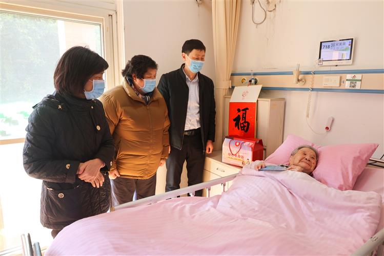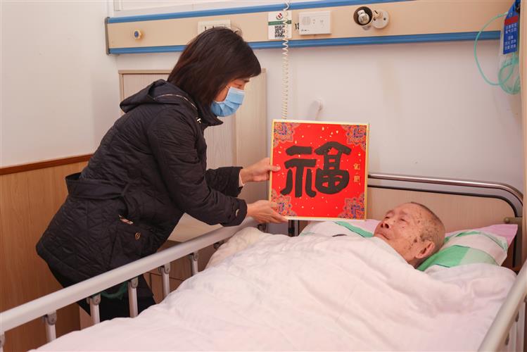 除了走访孤老家庭,周珊珊副理事长和王美新会长一行还特意前往金山区众仁老年护理医院,看望了在这里住院的特殊长者。