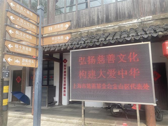 金山慈善首创性启动“慈善宣传进社区”活动,对区代表处“凡人善举”爱心窗口的宣传进行了升级,运用电子屏滚动播放慈善标语与宣传片。