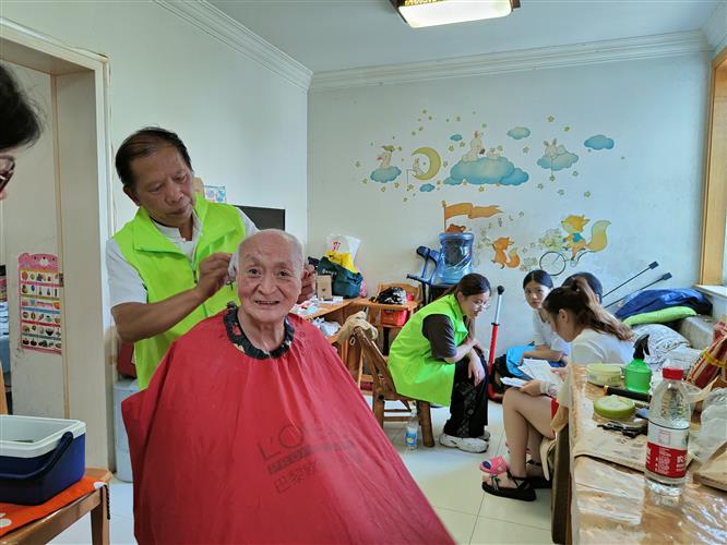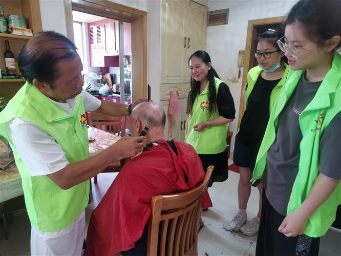 7月30日上午,家住天虹四村小区的退役军人沈火根家中一片欢声笑语。伴随着志愿者剪刀卡嚓卡嚓的清脆响声,沈伯伯原先凌乱的头发变得整齐利落,整个人都看上去精神多了。沈火根及配偶两人在去年年底突发脑梗,导致现在无法正常出行,志愿者一并给阿姨也理了发,两位老人笑容满面的连连夸赞好手艺。随后,志愿者们又冒着高温天气,去了天虹二村退役军人金志良老人家中,为这位高龄老人也理了发,老人由于耳聋,导致语言障碍已经不会说话,工作人员向其家属宣传了残疾证办理的相关政策。