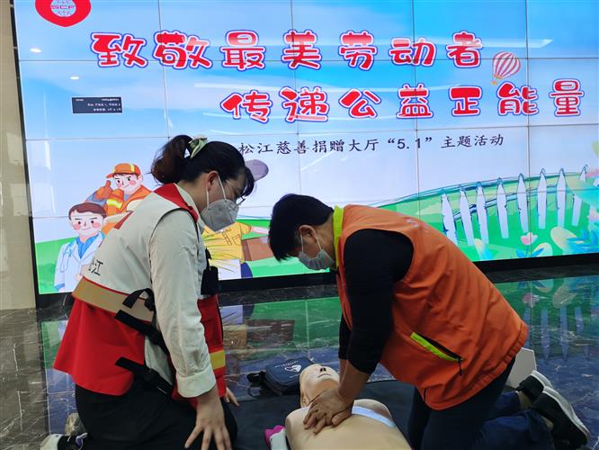 5月1日上午,上海市慈善基金会松江区代表处在松江慈善捐赠大厅举办“5.1”主题活动,通过健康义诊、便民服务、救护培训、乐活体验、暖心关爱等方式,致敬最美劳动者,传递公益正能量。100余名物业安保、环卫工人、绿化养护工人、家政服务员、养老护理员、快递(外卖)小哥等一线劳动者走进大厅打卡体验。
