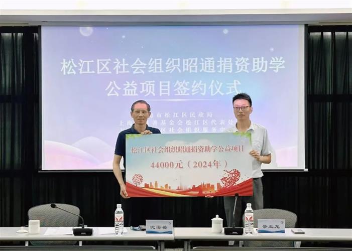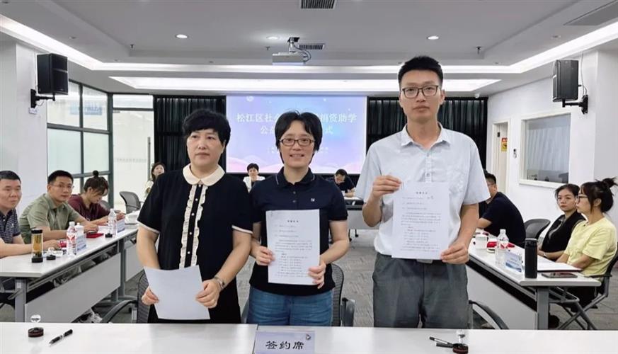 现场,参与捐资助学项目的社会组织代表(上海市松江区工业企业联合会) 和上海市慈善基金会松江区代表处、上海市松江区社会组织服务中心进行三方签约。