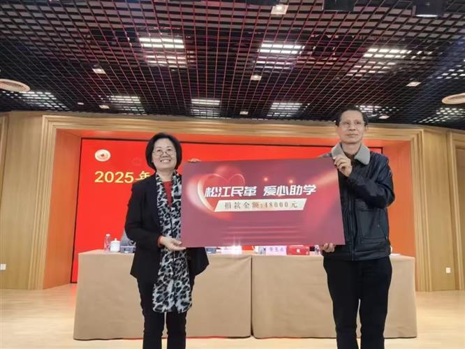 1月4日上午,在民革松江区委2024年度工作总结暨表彰大会上,“松江民革 爱心助学”捐赠仪式顺利举行。民革松江区委主委俞悦代表123名党员举牌捐赠48000元,持续结对帮扶区内困难学生。上海市慈善基金会松江区代表处副会长兼秘书长景玉龙对爱心善举致谢,并颁发捐赠证书。