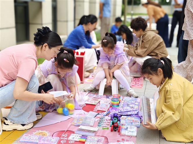 5月31日上午9时,松江区人民北路1061号慈善捐赠大厅外场,大小朋友陆续来到现场参与爱心义卖,奉献爱心。25组摊位上摆满了各式各样的图书画册、玩具文具、文创产品、手工艺品和家居用品等,为“蓝天下的蒲公英-手拉手助学”项目练摊助力。