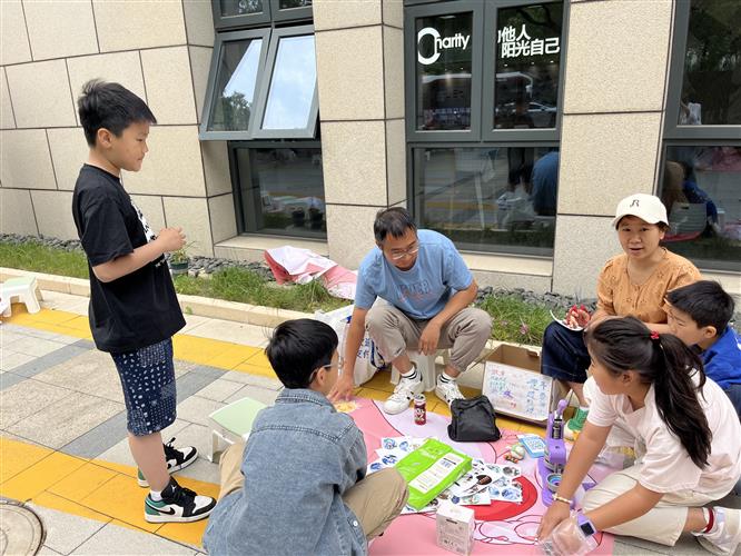 王女士已经多次带领两个孩子参加慈善基金代表处的爱心义卖活动了,这次他们带来了徽章制作神器,小朋友可以选择自己心仪的徽章图案稍加手工制作后就能立等生成一枚精致的徽章别针,吸引了众多大小朋友的光临惠顾。“你们组织的活动非常有意义,不仅能让孩子锻炼社交能力,也能从小培养他们通过劳动淬炼成长、奉献爱心的意识!”王女士向工作人员说道。
