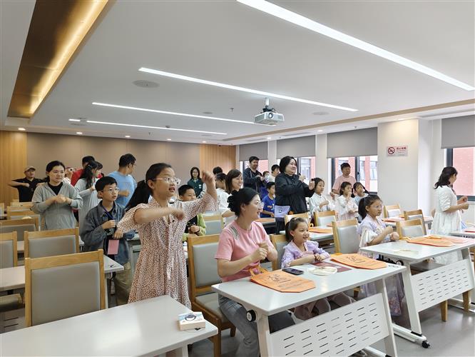 底楼慈善捐赠大厅内传来一阵阵的欢声笑语,上海茸城社区平安服务社的国家二级心理咨询师薛强正在开展亲子互动活动,他通过心理团康游戏、亲子协作挑战、情绪表达互动等寓教于乐的方式,传递心理健康知识,增进亲子情感联结。4组家庭的家长和孩子们玩得不亦乐乎,非常投入其中并十分享受这种方式给他们带来的别样的亲子体验和帮助。