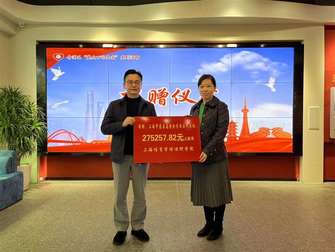 2月16日下午,上海佳育管理进修学院向上海市慈善基金会青浦区代表处捐赠275257.82元善款,用于青浦区慈善助学活动。