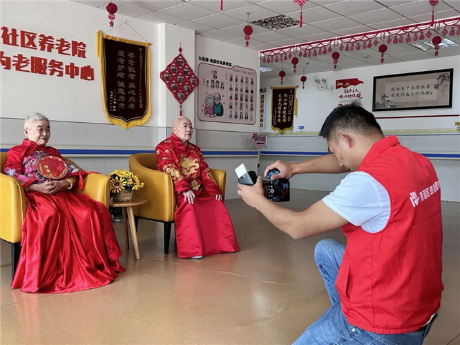 在重阳节到来之际,由青浦区民政局指导,上海市慈善基金会、上海市慈善基金会青浦区代表处共同主办,上海臻善公益发展中心承办的“孝亲敬老——有一天记忆空了,爱满了”为老服务项目,近日在华新镇综合为老服务中心开展。活动邀请专业摄影团队,为老人们补拍中式礼服结婚照,用照片记录他们“执子之手,与子偕老”的爱情故事。